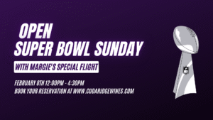 We are open on Super Bowl Sunday and Margie will be pouring her favorite selections. For those of you who know Margie, you probably know that she is always ready to open a new bottle of wine! We always joke, that if we let her open whatever wines she wants every day, we wouldn’t have any wine left to sell! Super Bowl Sunday we’re handing the reigns over to Margie. Join us as she takes over the tasting flight on Sunday, February 8th. You won’t want to miss indulging in Margie’s favorite wines.